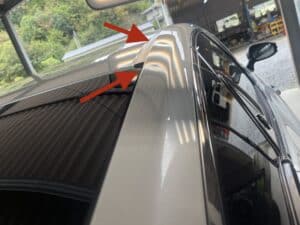 ルーフをデントリペアで裏から押し出して直す場合はルーフライニングを取り外す必要があります。